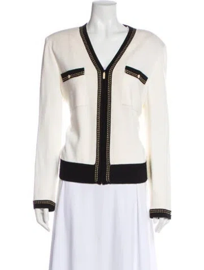 St. John Collection Wool Evening Jacket Neutrals Collarless Zip Closure Fit: Jackets by St. John typically fit true to size. | St. John Collection Wool Evening Jacket in Neutrals, Women's L
