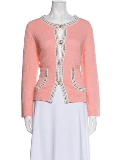 St. John Collection Wool Evening Jacket Pink Embroidered Accent & Collarless Slit Pockets Fit: Jackets by St. John typically fit true to size. | St. John Collection Wool Evening Jacket in Pink, Women's US 8 | M
