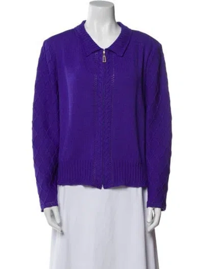 St. John Collection Wool Jacket Blue Crochet Trim & Pointed Collar Zip Closure Fit: Jackets by St. John typically fit true to size. | St. John Collection Wool Jacket in Blue, Women's US 14 | XL