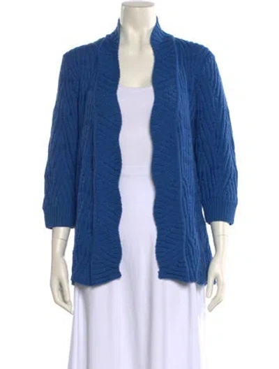 St. John Wool Cardigan Blue Three-Quarter Sleeve with Open Front Designer Fit: Sweaters by St. John typically fit true to size. | St. John Wool Open Front Sweater in Blue, Women's M