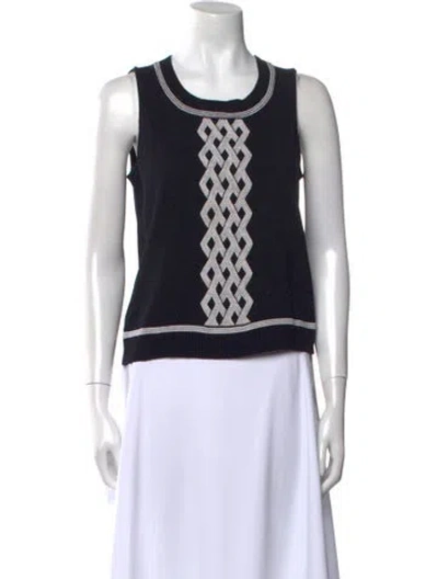 St. John Collection Wool Sweater Black Printed Sleeveless with Scoop Neck Fit: Knitwear by St. John Collection typically fit true to size. | St. John Collection Wool Printed Sweater in Black, Women's S