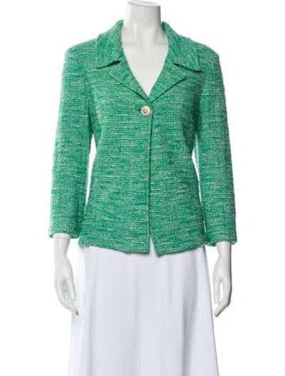 St. John Wool Blazer Green Tweed Pattern Pointed Collar Button Closure Designer Fit: Jackets by St. John typically fit true to size. | St. John Wool Tweed Pattern Blazer in Green, Women's US 12 | XL