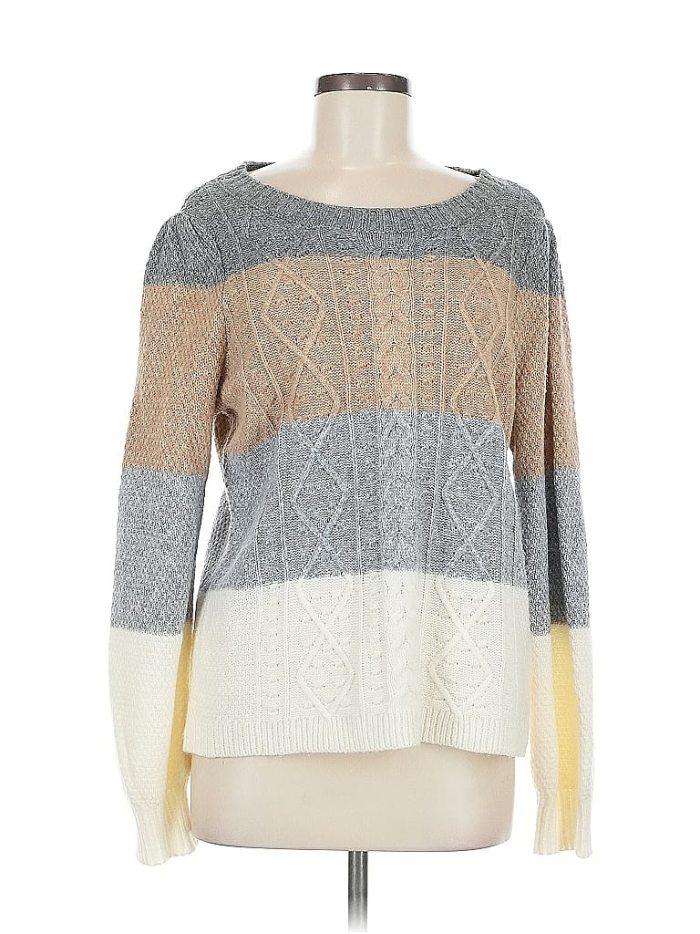 St. John's Bay Pullover Sweater, Size: Medium. Item Details: Gray, Color Block Pattern, Square Neckline, Long Sleeve, Women's Tops, Acrylic/Nylon