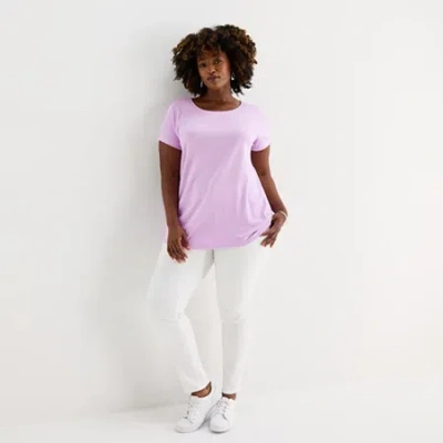 ST. JOHN'S BAY Womens Plus Crew Neck Short Sleeve T-shirt In Pink