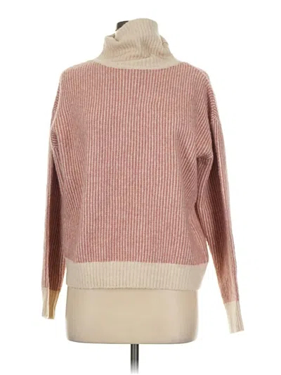 Staccato Pullover Sweater, Size: Medium. Item Details: Pink, Color Block Pattern, Mock Neckline, Long Sleeve, Shearling, Women's Tops, Acrylic/Polyester/Nylon