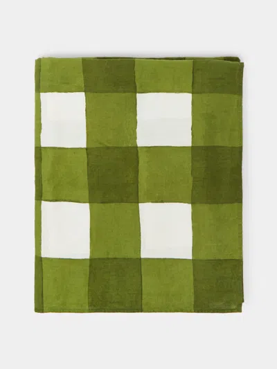 Stamperia Bertozzi's beautiful textiles capture the joie de vivre of a full table. To create the gingham theme of this linen tablecloth, the maker uses a roller to hand-paint horizontal and vertical lines, using rustic dyes from secret-recipe vegetal bases. The result is idyllic, perfect for pairing with the matching napkins.