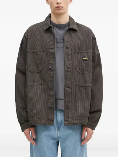 STAN RAY Striped Overshirt In Brown