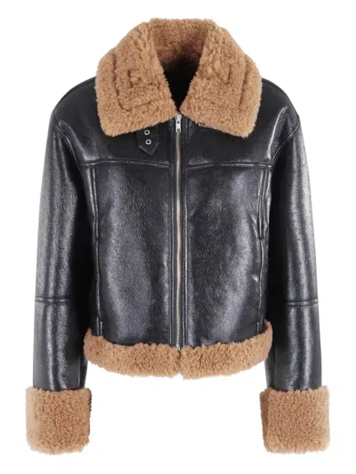 Kia jacket -Stand Studio -Color black and nougat -Long sleeve -Side pockets -Center zipper closure -Teddy effect collar