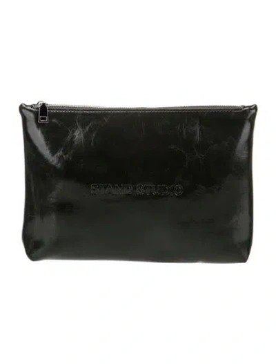 STAND STUDIO Clutch Grey Leather Silver-Tone Hardware Twill Lining Zip Closure at Top Unfortunately, due to restrictions, this item may not be eligible for shipping in all areas. | STAND STUDIO Leather Clutch in Grey