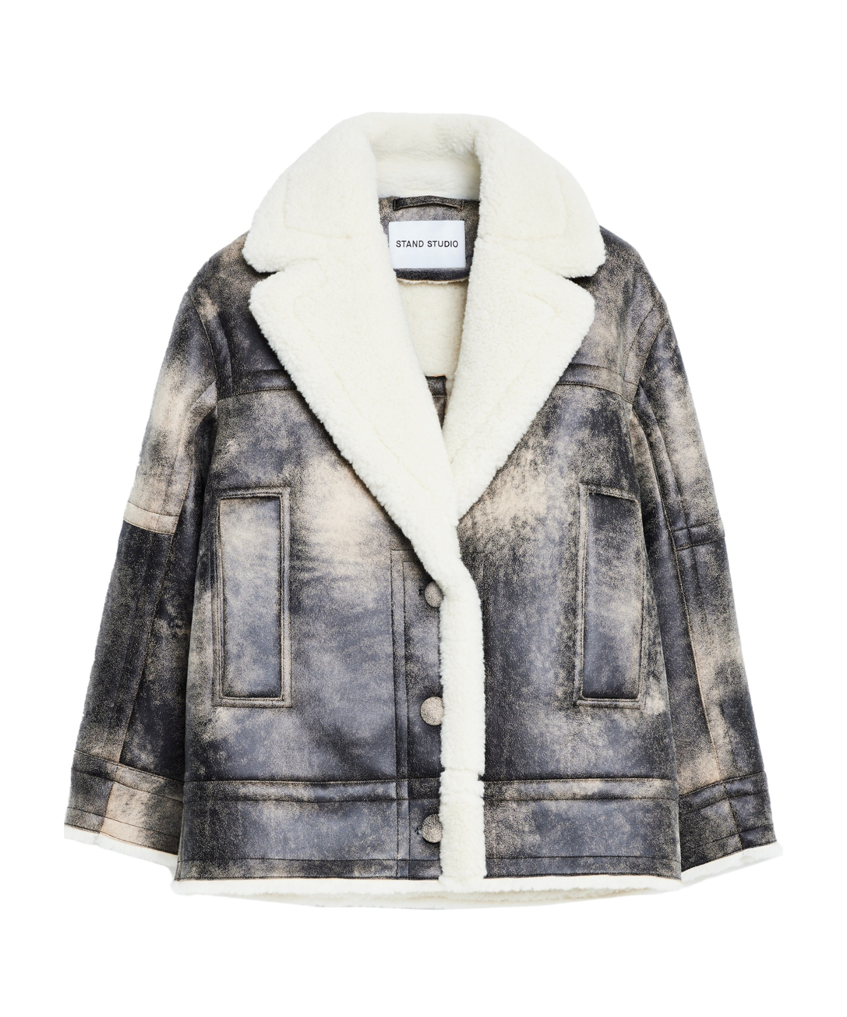 Grey shaded Stand Studio sheepskin, featuring long sleeves, front buttoning, wide white lapels and two side welt pockets. Model wears size 36 FR Model measurements: Height: 179 cm Chest: 82 cm Waist: 65 cm Hips: 90 cm Size Type: FRMaterial: Eco furSKU: 663259073/P_STAND-81040_108 Our Products Are 100% Genuine. In All Cases We Stand By The Authenticity Of Every Product Sold On Our Site.