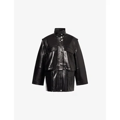 STAND STUDIO Womens Black Legacy High-neck Leather Parka