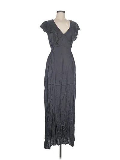 Stark X Casual Dress, Size: Medium. Item Details: Gray, Maxi, V Neck, Long Length, Short Sleeve, Ruched, Women's Dresses, 100% Rayon