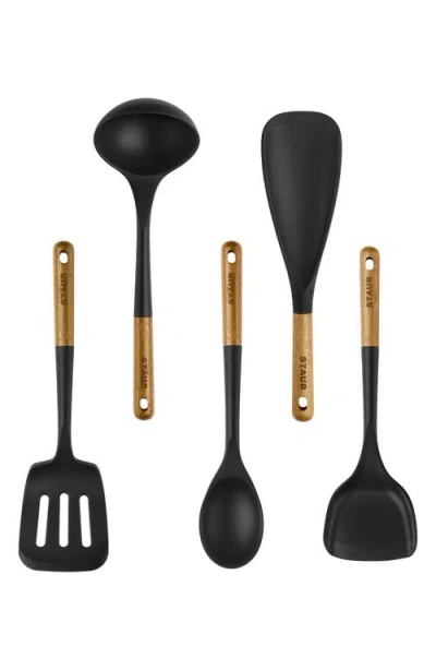 Color/Finish: Matte Black Design Details: Staubõs Wildly Popular Silicone Cooking Utensils Are Now Available In Bundles. Outfit A New Kitchen With The 3-Piece Starter Set, Expand Your Collection With The 5-Piece Essential Set, Or Stock Your Kitchen With The 11-Piece Complete Set. These Best-Sellers Make The Perfect Registry Or Hostess Gift For Newlyweds, New Homeowners, Or The Long-Time Staub Fan. Each Bundle Includes The Fan-Favorite 2-In-1 Multi-Function Spatula Spoon. Great For Both Cooking And Serving Thanks To The Innovative Scoop Design, You Can Use It To Break Up Meat As It Browns, Scrape And Deglaze Pans After Searing, And Then Neatly Serve Sides And Mains Straight To The Table. Other Handy Tools Included In The Bundles Include A Ladle, A Wok Turner, Tongs, And A Pastry Brush. Beautiful And Ergonomic, Staub Tools Are Carefully Contoured To Fit Comfortably In The Hand So That You Can Effortlessly Stir Stews, Skim Soups, And Flip Steaks. Each Tool Is Made From Ultra-Durable, Matte Black Silicone Thatõs Resistant To High Temperatures And Safe To Use On All Cooking Surfaces, Including Nonstick. The Sleek Silicone Is Complemented By Handsome Acacia Wood Handles Each Featuring A Unique Wood Grain Pattern. And Their Handy Hanging Loops Ensure Easy Storage. Staubõs Best-Selling Silicone Tools Bundled Together At An Attractive Price. Made From Bpa-Free Matte Black Silicone. Food-Safe Silicone Is Easy To Clean, Long Lasting, And Resistant To High Temperatures. Safe To Use On All Cookware Surfaces, Including Nonstick. Acacia Wood Handles Ð Each Has Unique Wood Grain Pattern. Ergonomic Handles Feature Convenient Hanging Loop. Hand Wash Recommended. Measures 5.5In X 5.3In Materials: Silicone Food Safe Dishwasher Safe Imported Contents Of Set: Multi-Function Spoon Soup Ladle Wok Turner Serving Turner Serving Spoon