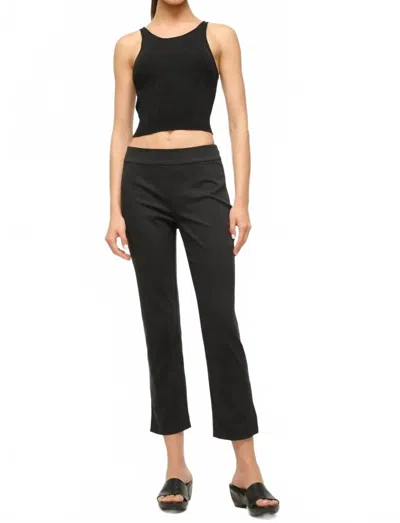 Enhance your wardrobe with this trendy cropped number, designed to blend style and practicality. The comfortable fit allows for easy all-day wear. The perfect length to pair with your favorite mules.Discover effortless style with the Hunter Pant by STAUD, crafted for a sleek silhouette in a versatile black. These slim-fit pants feature a 27" inseam and a cropped, straight leg design, perfect for showcasing your favorite shoes. The material is a comfortable blend of 57% Cotton, 40% Polyester, and 3% Spandex, ensuring a perfect fit with a pull-on closure. Care - Dry clean only. Model is 5'10" and wears a size 4.