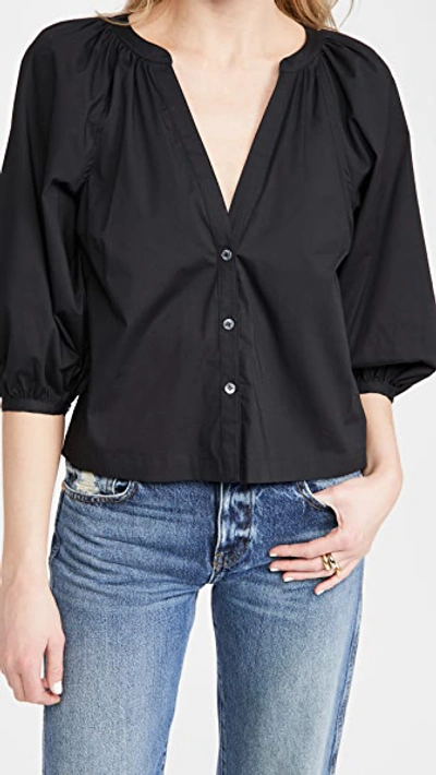 STAUD Dill Puff-sleeve Button-front Top In Black