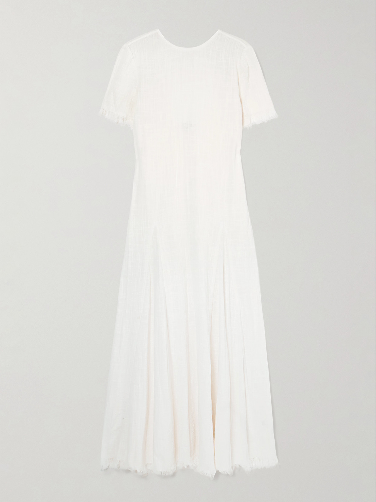 STAUD Le Havre Fringed Cotton-gauze Midi Dress In White