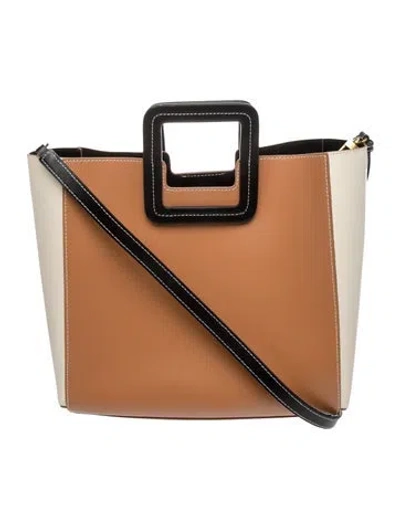 Staud Top Handle Bag Brown Leather Gold-Tone Hardware Cutout Handles & Single Adjustable Shoulder Strap Unlined Open Top Protective Feet at Base Unfortunately, due to restrictions, this item may not be eligible for shipping in all areas. | Staud Leather Top Handle Bag in Brown