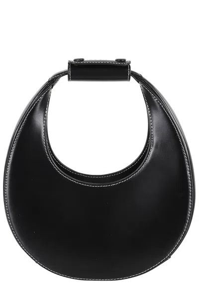 Calfskin mini moon by staud, iconic round moon shape, rigid handle, top closure with magnetic button, iconic brand signature press-stamped on closure flap, interior zippered pocket, removable and adjustable shoulder strap. Composition: 100% % Calf Leather Bos Taurus