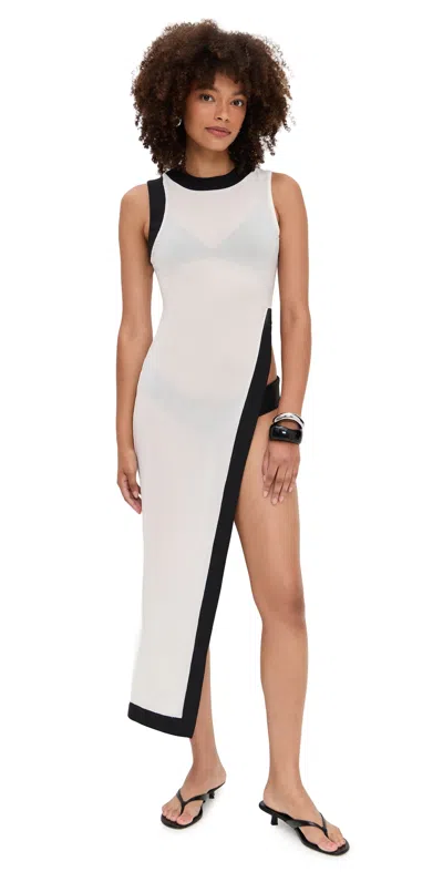 Fabric: Lightweight mesh. Contrast trim. Statement side slit. Crew neck. Sleeveless. Hook-and-eye and hidden zip at back. Shell: 86% polyamide/14% elastane. Dry clean. Imported, China. Measurements: Measurements from size XS Length: 50.5in / 128.0cm, from shoulder