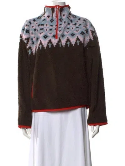 Staud Pullover Printed Long Sleeve with Mock Neck Concealed Zip Closure at Front Fit: Knitwear by Staud typically fit true to size. | Staud Printed Mock Neck Sweater, Women's S