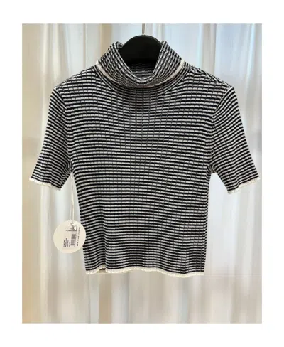 Stripe design knitted pullover, short sleeves, high collar.