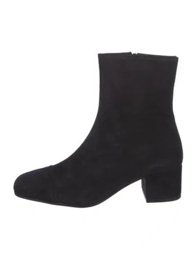 Staud Suede Ankle Boots Black Suede Trim Square-Toes Concealed Zip Closure at Sides Includes Dust Bag | Staud Suede Boots in Black, Women's IT 37 | 7