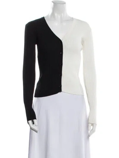 Staud Cropped Sweater Black & White Long Sleeve with V-Neck Button Closure at Front Fit: Knitwear by Staud typically fit true to size. | Staud V-Neck Sweater in Black/White, Women's XS