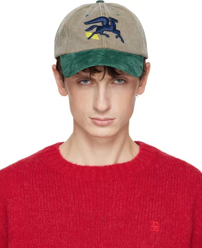 Cotton twill cap. · Fading throughout · Graphic embroidered at face · Curved suede brim · Text embroidered at back face · Logo flag at back face · Adjustable press-stud strap at back face Supplier color: Brown/Green