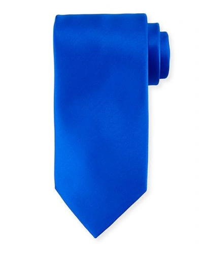 Solid Silk Satin Tie In Blue