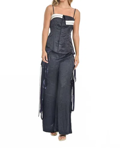 STEFFANY MILANO Midnight Elegance Wide-leg Pants In Navy Blue