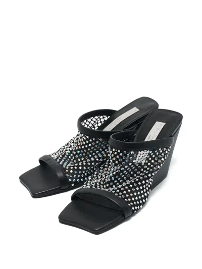 circa 2024 black crystal embellishment 100mm wedge heel square open toe Condition: EXCELLENT. This previously owned item is in near-perfect condition with no signs of damage or use.