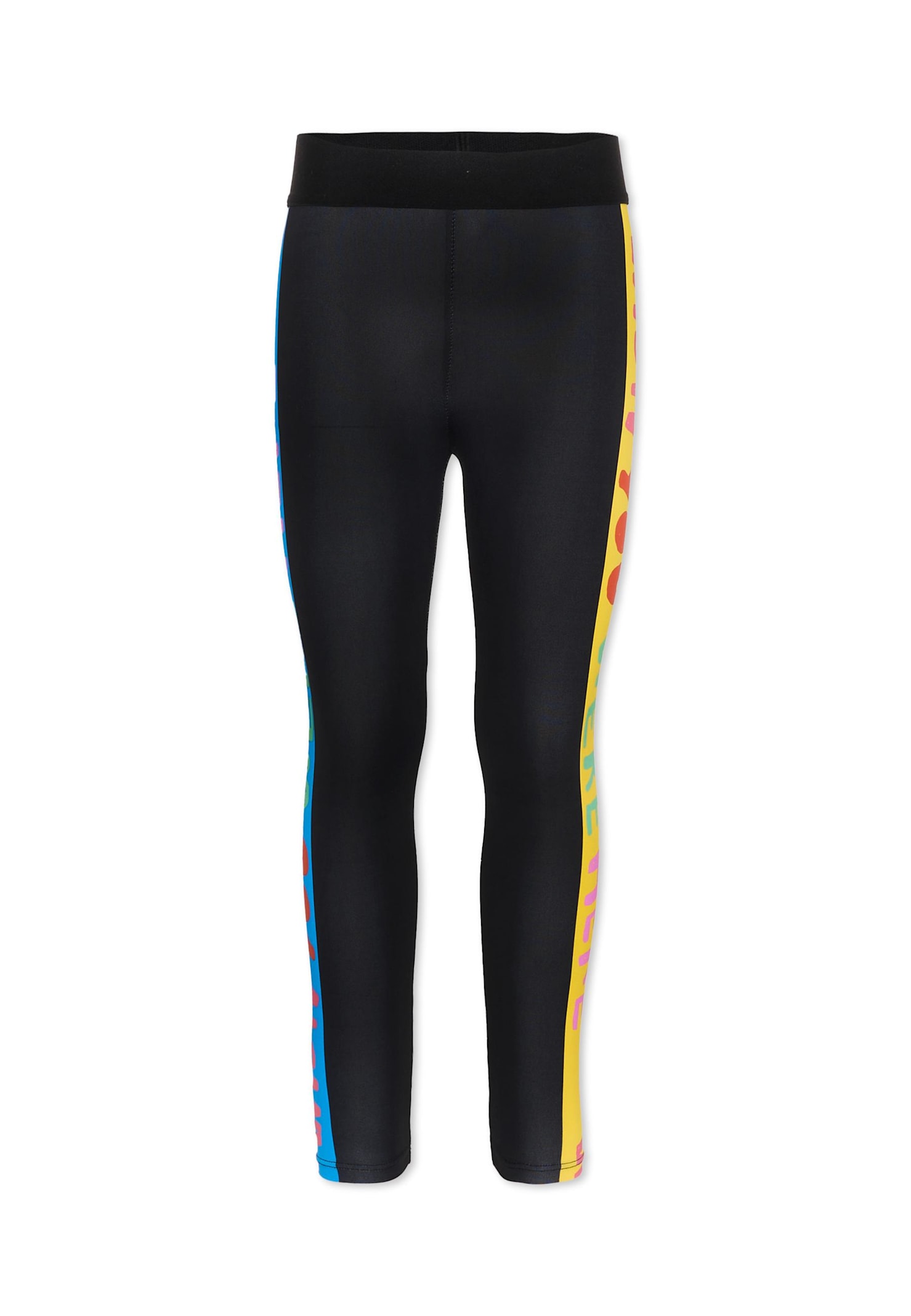 Color: Black Black leggings with an elastic waistband and multicolored side stripes; made from recycled fibers. They are embellished with logo on the sides. 78% Polyamide, 22% Elastane. Machine wash at 30°C.