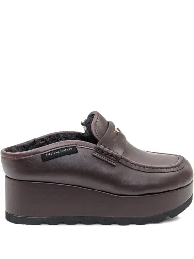 Stella McCartney brown faux leather loafers with shearling lining and high platform. Platform height: 6