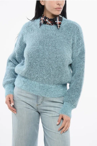 Eyelash Wool Blend Crew Neck Pullover In Blue