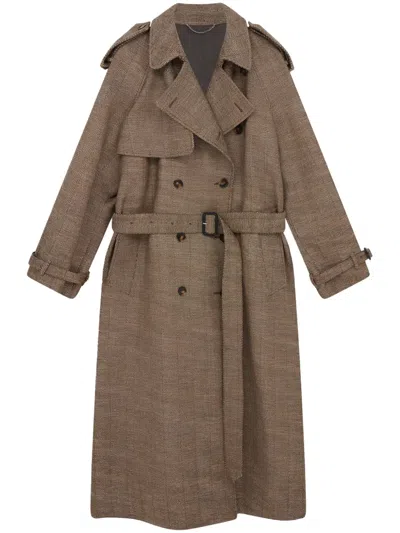 STELLA MCCARTNEY Herringbone Wool Trench Coat In Brown