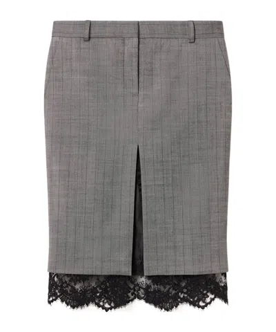 Lace-trimmed Pinstripe Midi Skirt In Gray