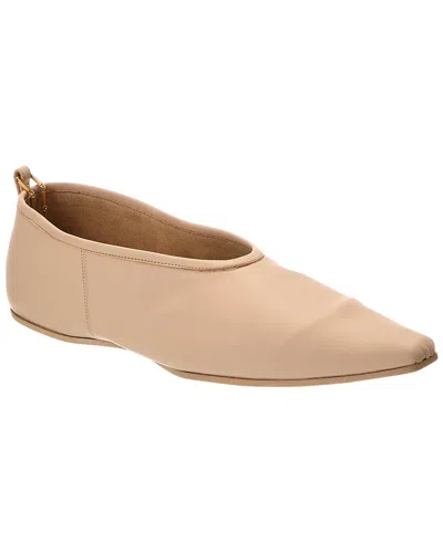 Elevate your shoe game with the Stella McCartney Logo Flat in beige vegan-friendly faux leather. This sophisticated flat features gold-tone hardware with a stylish chain ankle strap. Made in Italy, this flat is not only sharp and chic but also sustainable. The lightly padded insole and smooth man-made sole ensure all-day comfort and style. Please note that size selections are European, refer to the size chart for US conversions. Each product is 100% genuine, sourced from trusted independent suppliers to guarantee authenticity. Add a touch of luxury to your wardrobe with the Stella McCartney Logo Flat.