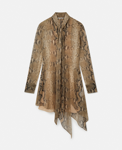 STELLA MCCARTNEY Python Print Silk Chiffon Dress In Brown Multicolour