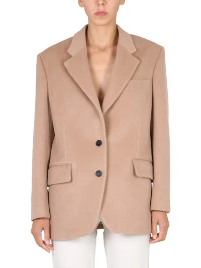 Notched lapels single breSpecificationValueSeasonFW22Composition100% COTTONColorBEIGEColor Code3AU7505604Made InITALYISOITDepartmentWomenSectionCLOTHINGSubsectionOUTERWEARSize InformationCLOTHING ITSize CodeIT