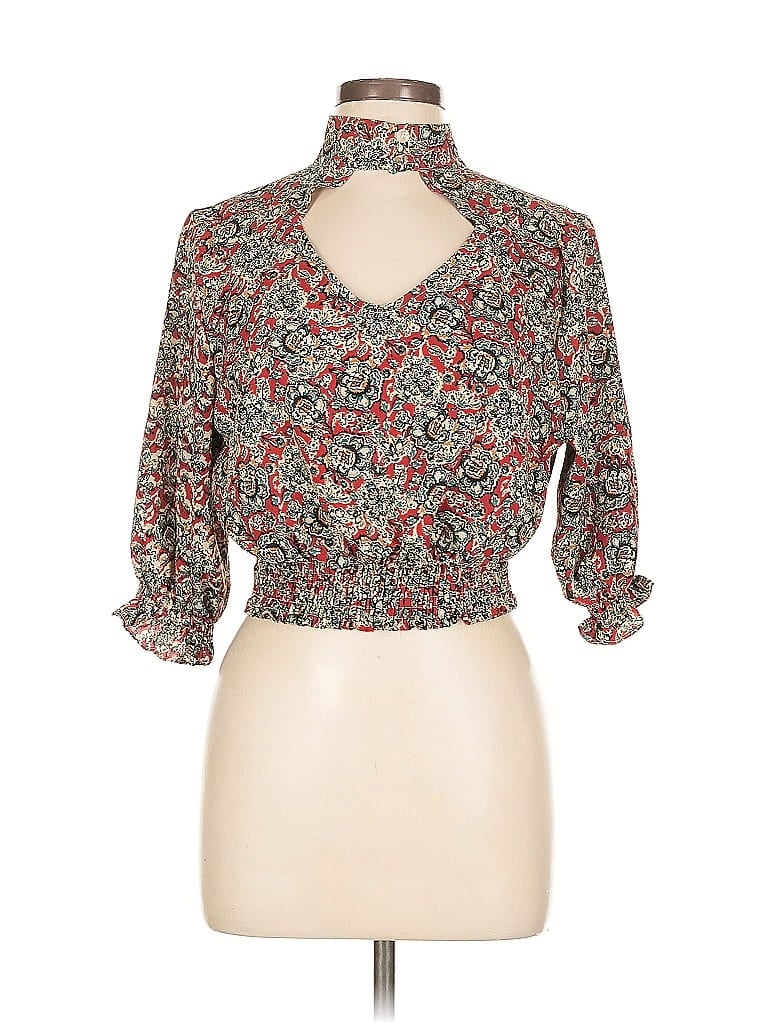 Stem & Vine 3/4 Sleeve Blouse, Size: Large. Item Details: Brown, High Neck, Women's Tops