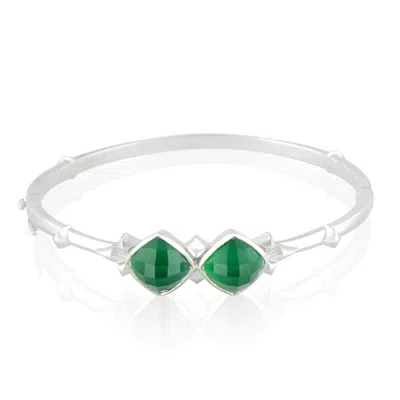 About The Brand: Unmistakable Luxurious Jewelry. .925 Sterling Silver And Rhodium Chrysoprase And Quartz Gemstones Doublet Bangle Bracelet Comfortably Fits A Size 6.5-7.5In Wrist Box Tab Insert It Is Customary To Treat Most Gemstones To Achieve Enhanced Color And Durability. Some Of These Treatments May Not Be Permanent And May Require Special Care. Accompanied With Manufacturer's Packaging Our Products Are 100% Genuine. In Some Cases We Purchase Merchandise From Trusted Independent Suppliers And Not Directly From The Brand Owner. In All Cases We Stand By The Authenticity Of Every Product Sold On Our Site.