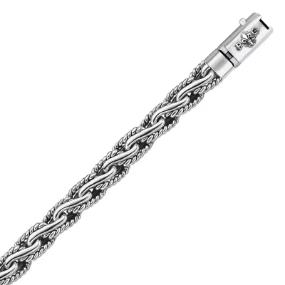 This 8.5mm oxidized sterling silver bracelet radiates sophisticated elegance showcasing a two-textured chain in polished and cable style this piece looks positively handsome. Available in 7 1/2 inches and 8 1/2 inches sizes and comes with a fleur de lis designed box clasp.