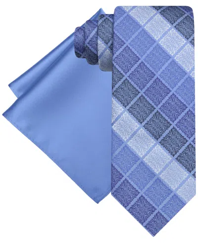 STEVE HARVEY Men's Gradient Squares Tie & Solid Pocket Square Set