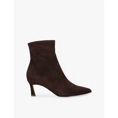 Steve Madden suede heeled ankle boots100% suedeZip fasteningPointed toe, branded zip, flared high heelHeel height 58mm / 2.3inSpecialist leather cleanUpper: 100% leatherLining: 100% leatherSole: 100% synthetic