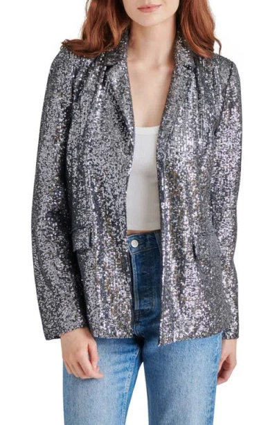 STEVE MADDEN Payton Sequin Open Front Blazer In Silver Grey
