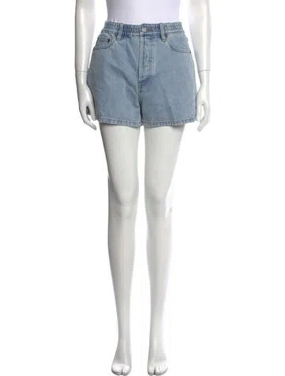 Still Here Shorts Blue High-Rise Light Wash with Raw-Edge Trim Slit Pockets Button Closure Fit: Shorts by Still Here typically fit true to size. | Still Here Mini Shorts in Blue, Women's S
