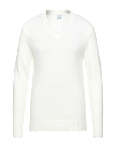 knitted, lightweight knit, worn effect, no appliqués, solid color, v-neck, long sleeves, no pockets , Color: Ivory , Size: XXL