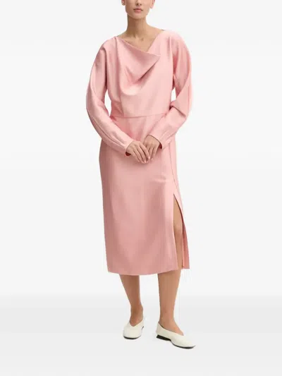 Cowl-neck Slit Midi Dress In Pink