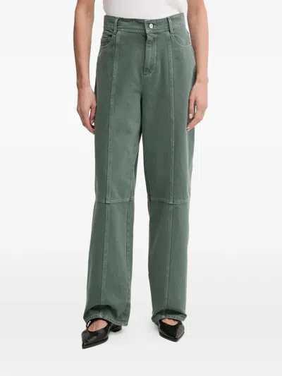 dark green panelled design back patch pockets topstitching waistband embroidery