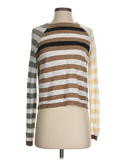 STITCHDROP Pullover Sweater, Size: X-Small. Item Details: Brown, Stripes Pattern, Mock Neckline, Long Sleeve, Women's Tops